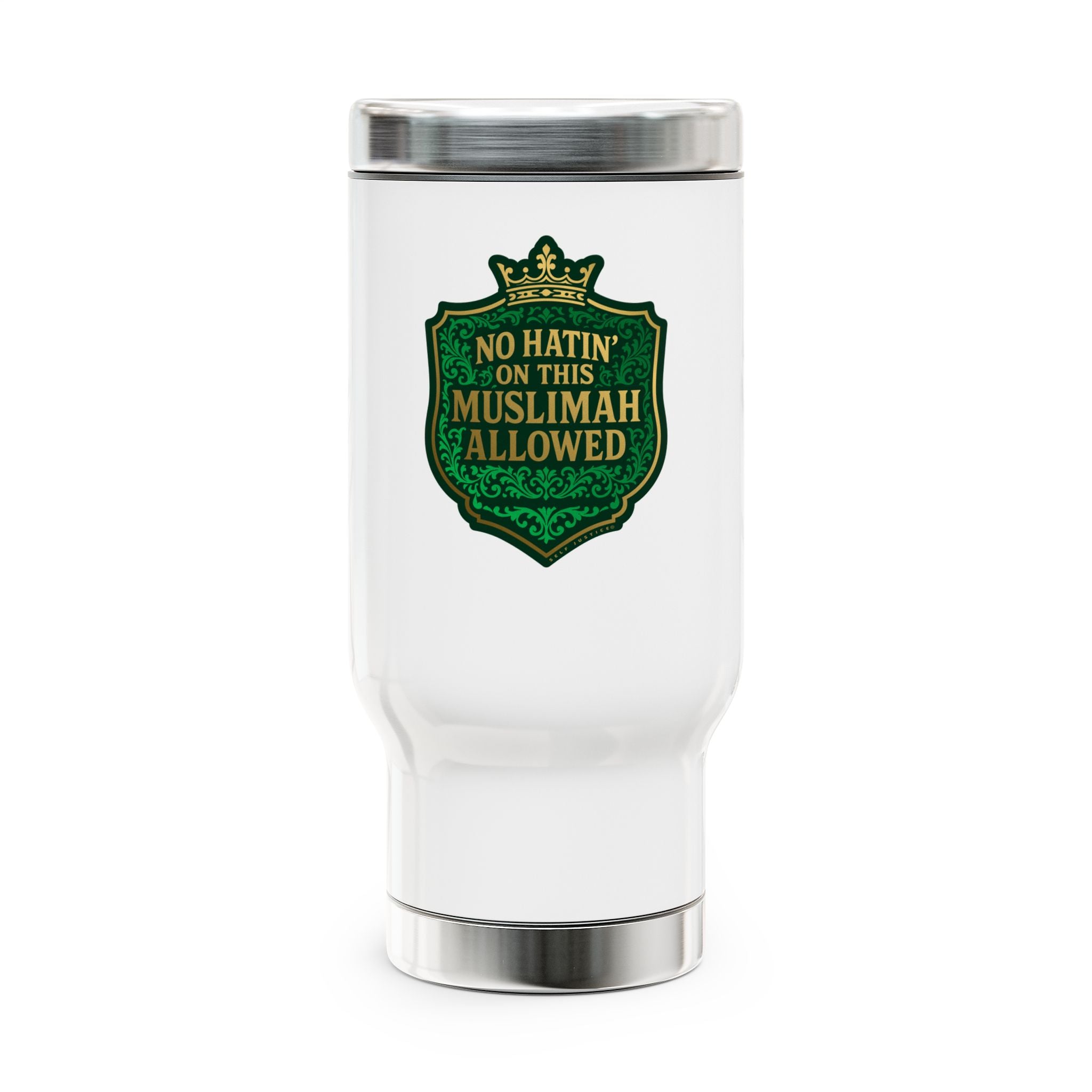 Crown No Hatin’ On This Muslimah Allowed Travel Mug, 14oz Stainless Steel Coffee Cup, Gift for Muslim Women, Travel Tumbler, Islamic Quote Mug, Unique Holiday Gift