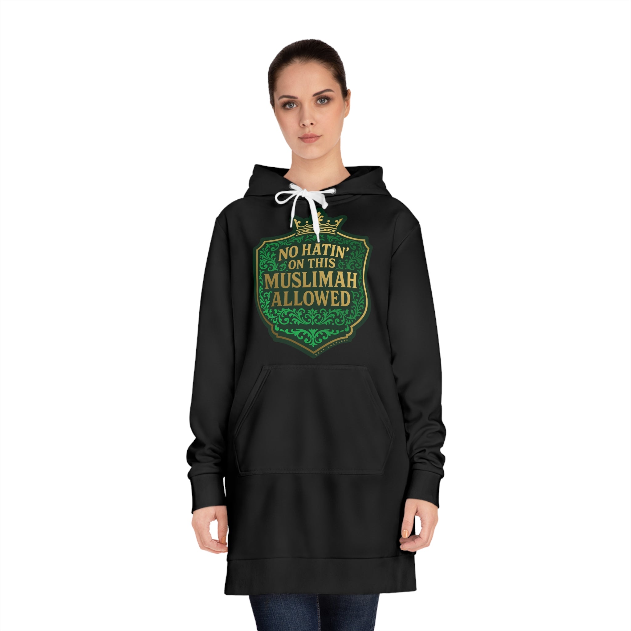 Crown No Hatin’ On This Muslimah Allowed Women's Hoodie Dress with Unique Design | Casual Style | Perfect for Comfort, Gifts, and Everyday Wear