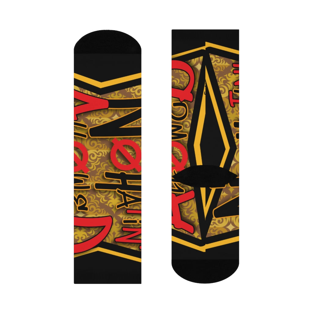 Direct-to-garment socks are a one-size-fits-all solution up to a men’s size 12. The base color is white with black on the toes and heel. The construction is 73% polyester, 18% nylon, 6% spandex, and 3% cotton. Add some foundational character with an all-over-print design; giving your customers a chance to style-up their footwear.