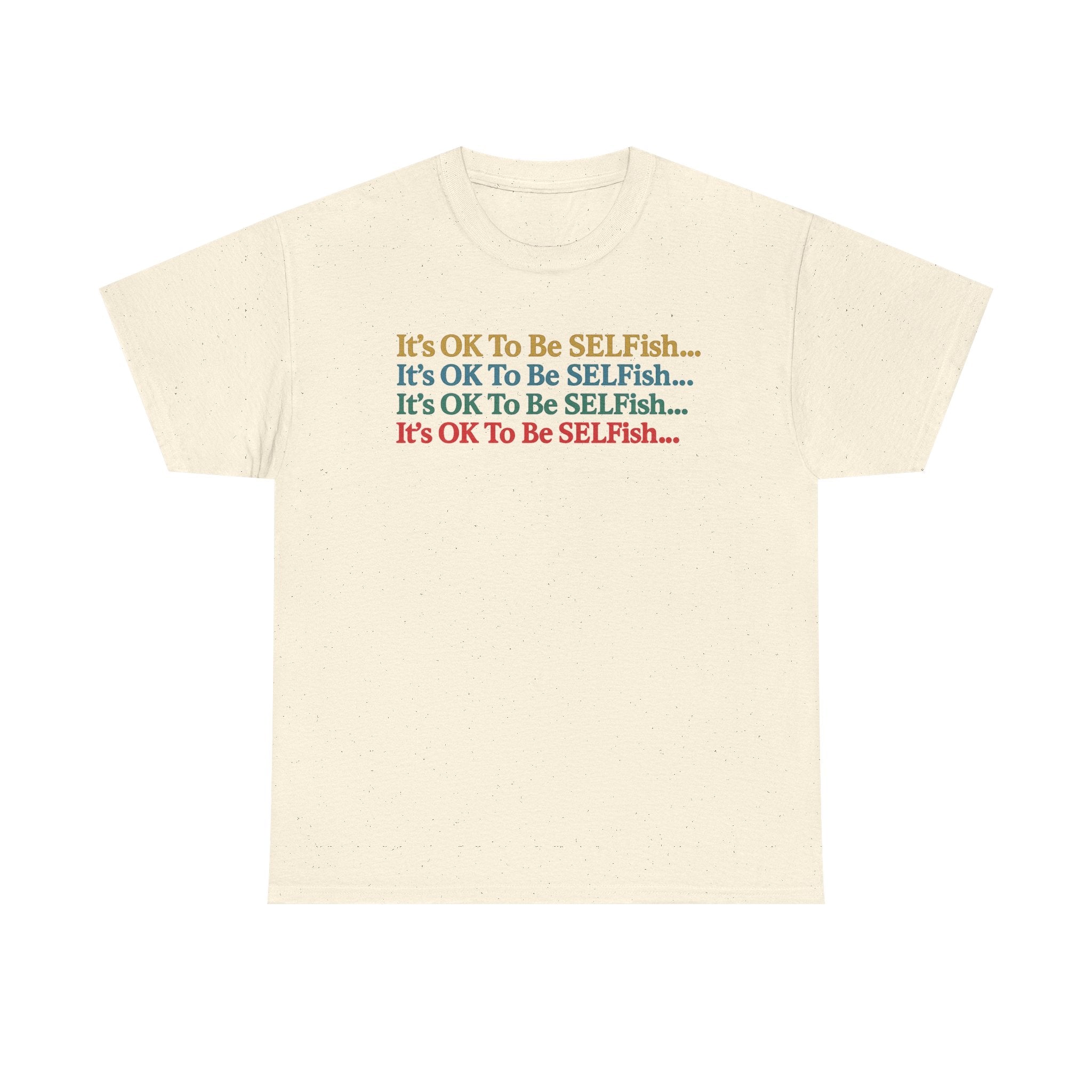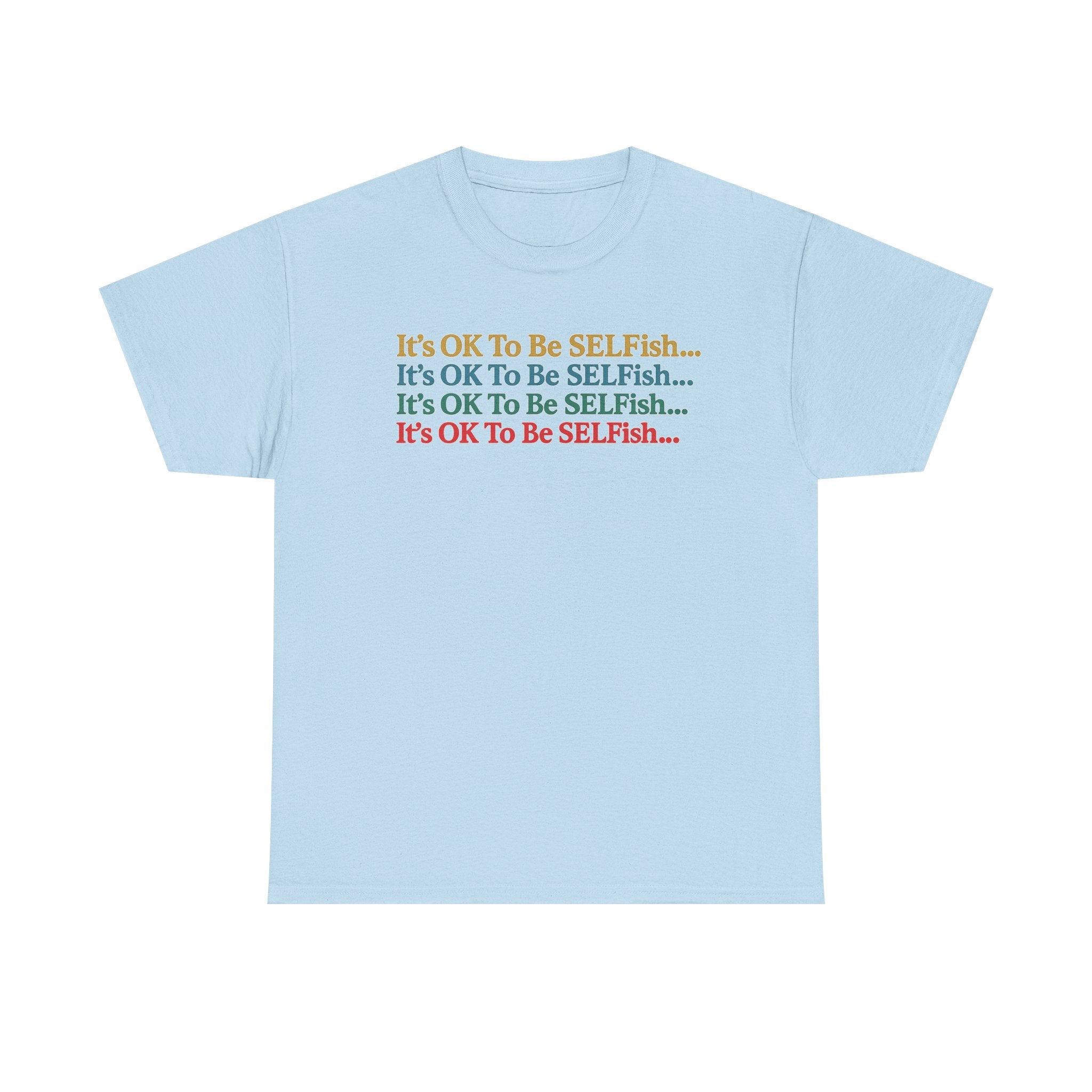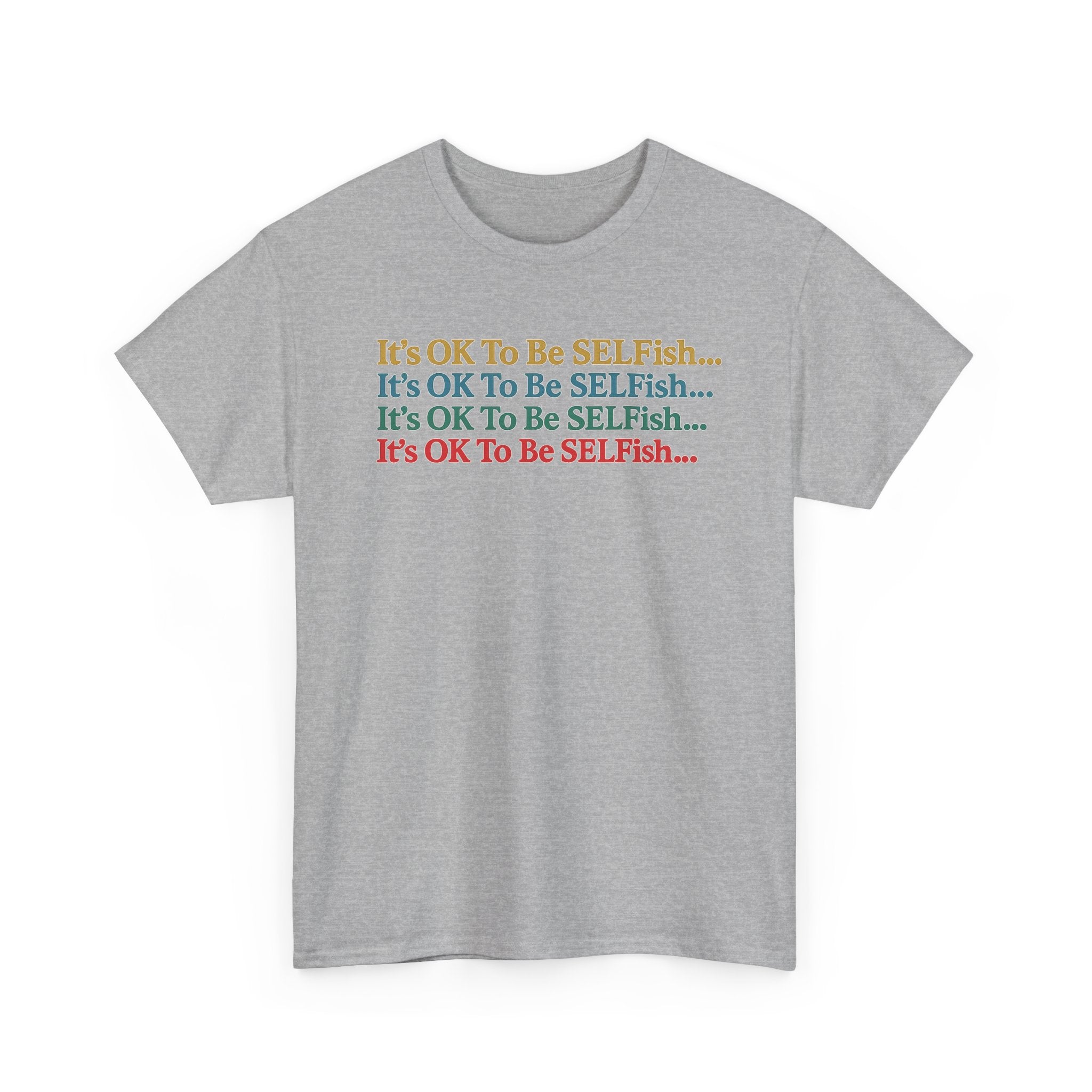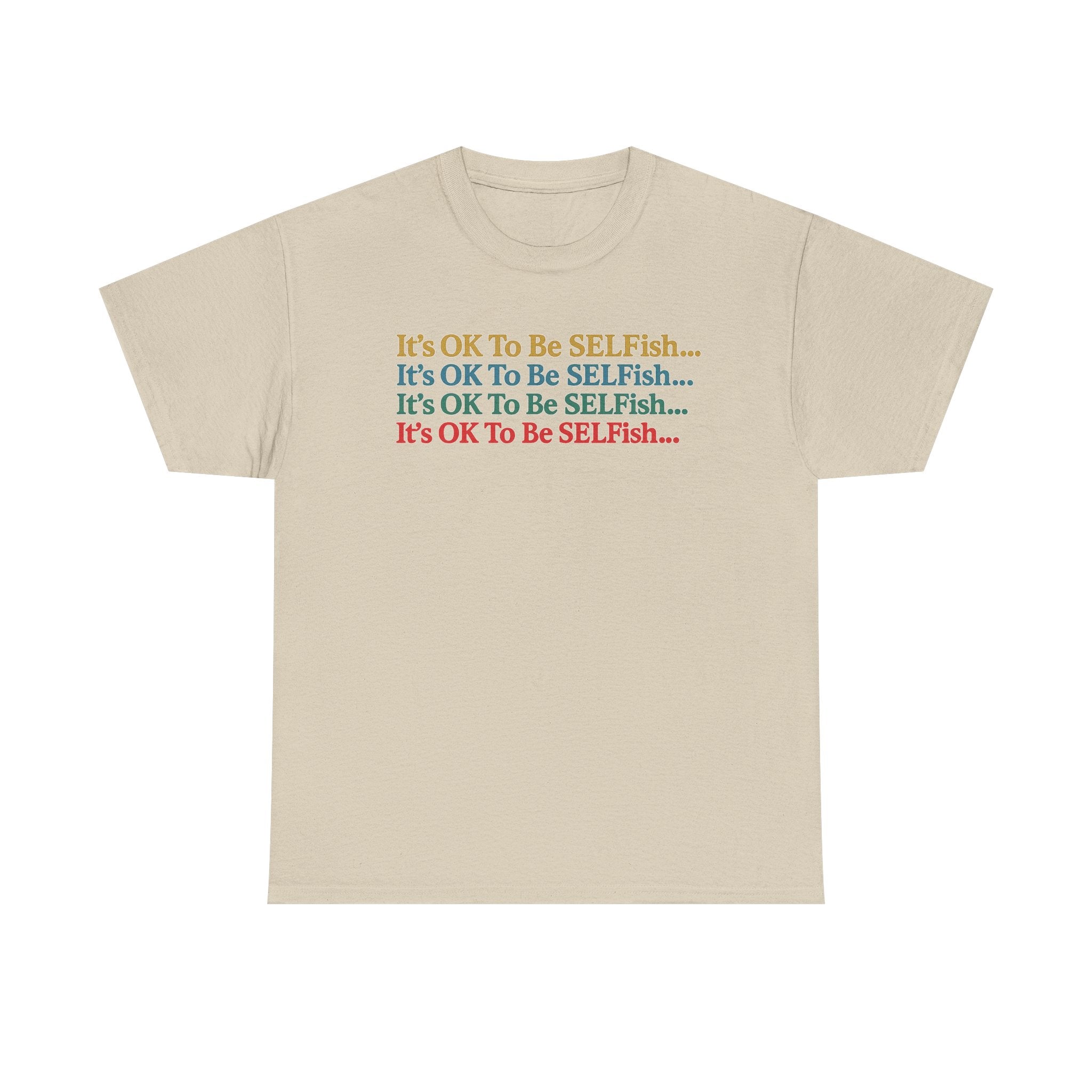 Embrace individuality and self-love with this Unisex Heavy Cotton Tee. Its playful yet empowering design, featuring the mantra 'It's OK To Be SELFish,' encourages a positive self-affirmation that resonates with anyone needing a reminder to prioritize their well-being. Perfect for casual outings or as a thoughtful gift for friends and loved ones, this tee is suitable for various occasions, including birthdays, self-care days, and even holidays that celebrate personal growth, such as World Mental Health Day. Its comfortable fit makes it a staple in any wardrobe, allowing wearers to express themselves effortlessly. This tee is relevant for adults seeking a blend of style and self-expression. Whether paired with jeans for a laid-back look or dressed up with accessories for a fun night out, this shirt fits seamlessly into every lifestyle.