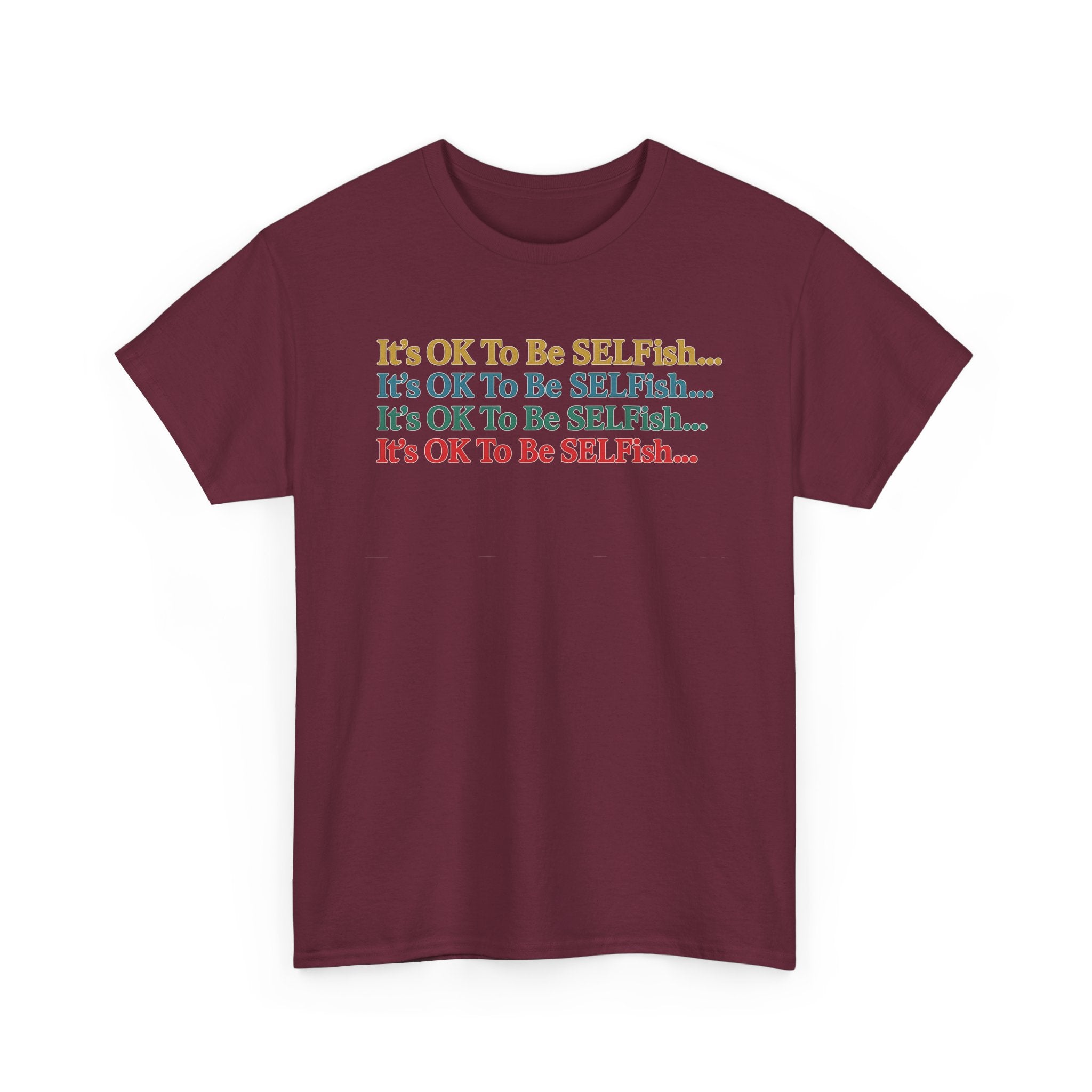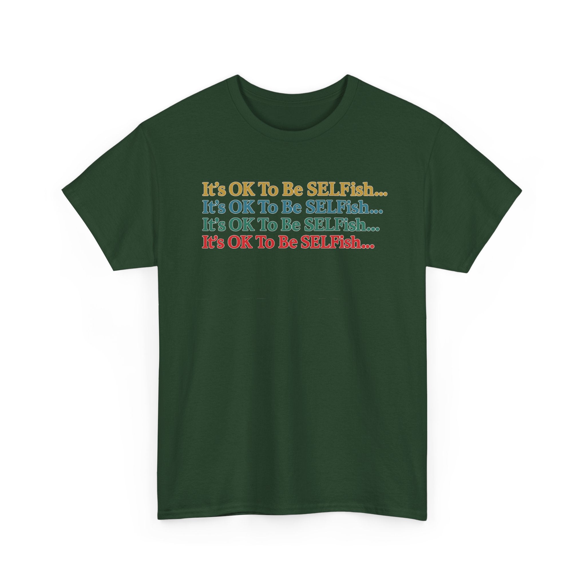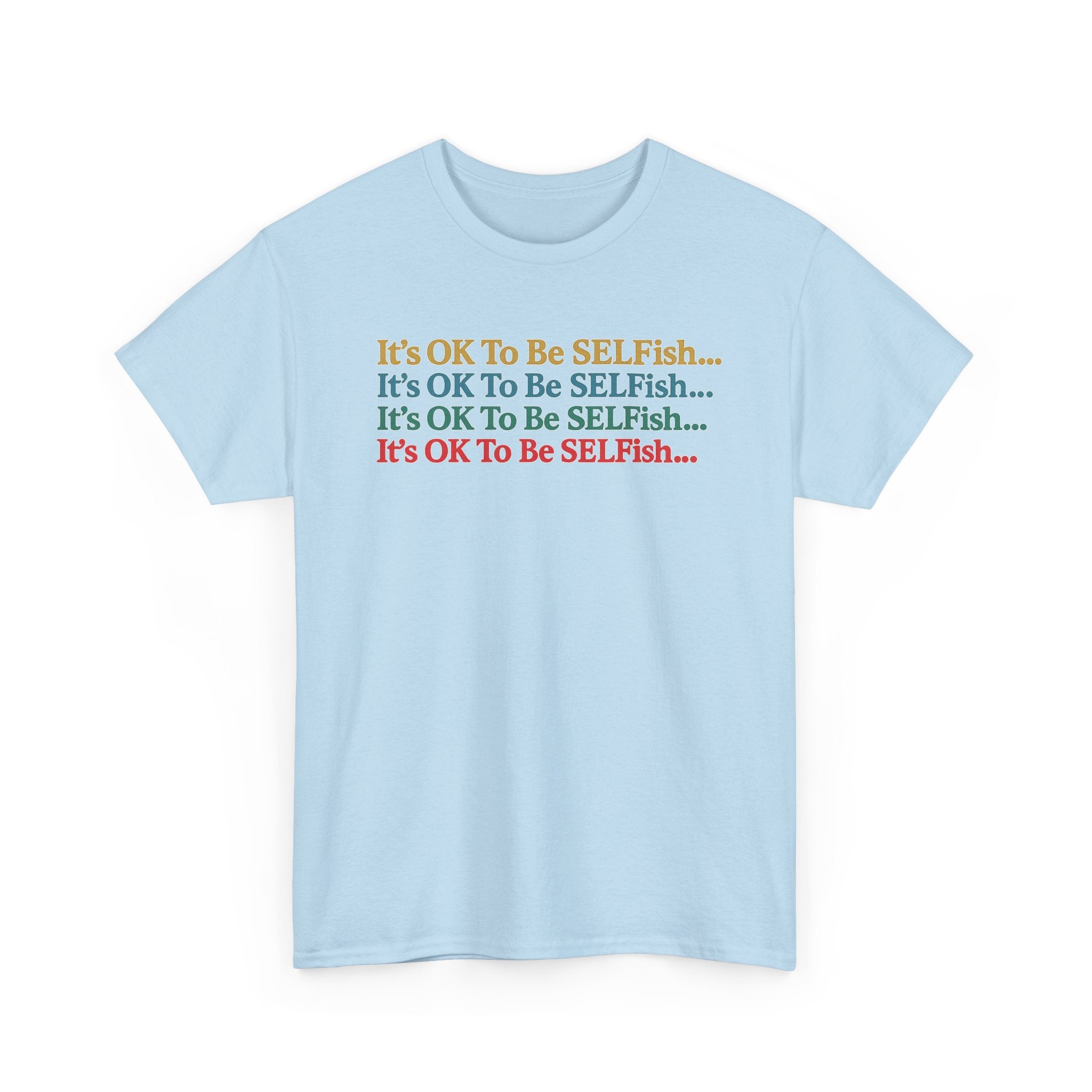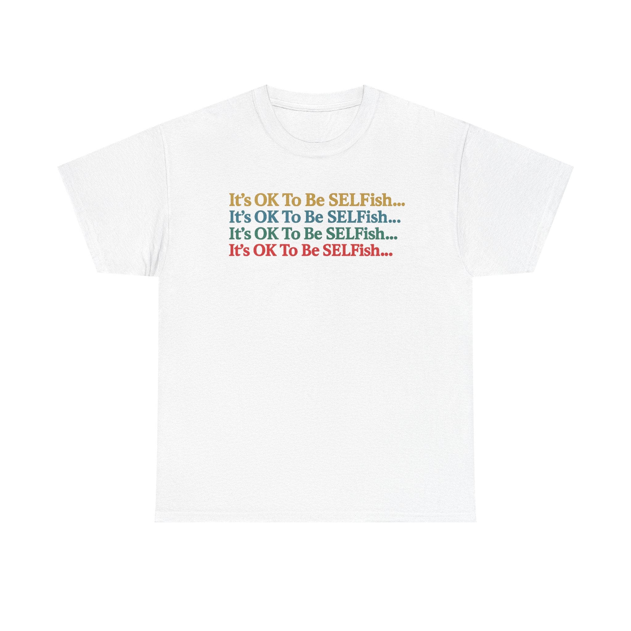 Embrace individuality and self-love with this Unisex Heavy Cotton Tee. Its playful yet empowering design, featuring the mantra 'It's OK To Be SELFish,' encourages a positive self-affirmation that resonates with anyone needing a reminder to prioritize their well-being. Perfect for casual outings or as a thoughtful gift for friends and loved ones, this tee is suitable for various occasions, including birthdays, self-care days, and even holidays that celebrate personal growth, such as World Mental Health Day. Its comfortable fit makes it a staple in any wardrobe, allowing wearers to express themselves effortlessly. This tee is relevant for adults seeking a blend of style and self-expression. Whether paired with jeans for a laid-back look or dressed up with accessories for a fun night out, this shirt fits seamlessly into every lifestyle.