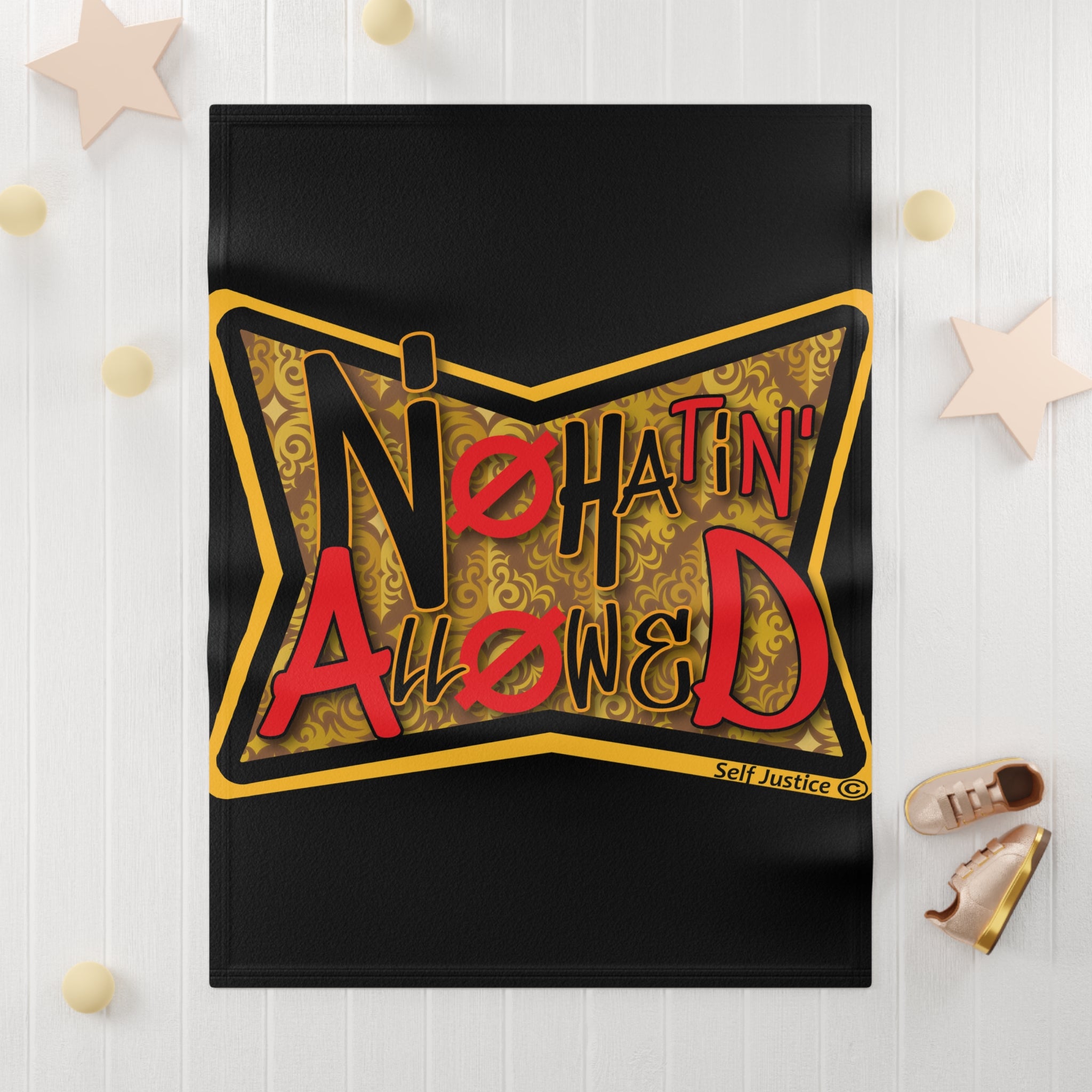 Fleece is king when it comes to fluffy softness. As such, the personalized fleece baby blanket is a cuddle necessity. 30” by 40”, this 100% polyester rectangle supports printing on one side. These items are preconstructed before printing, so exact symmetry is not guaranteed. Due to the microfiber construction, small colored dots may pop up. A cold wash cycle and a tumble dry, however, should reduce this possibility.