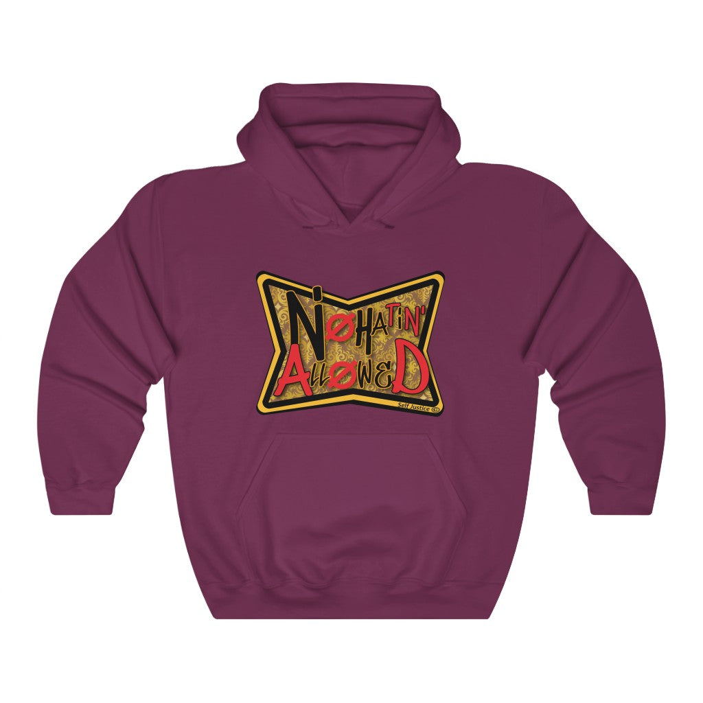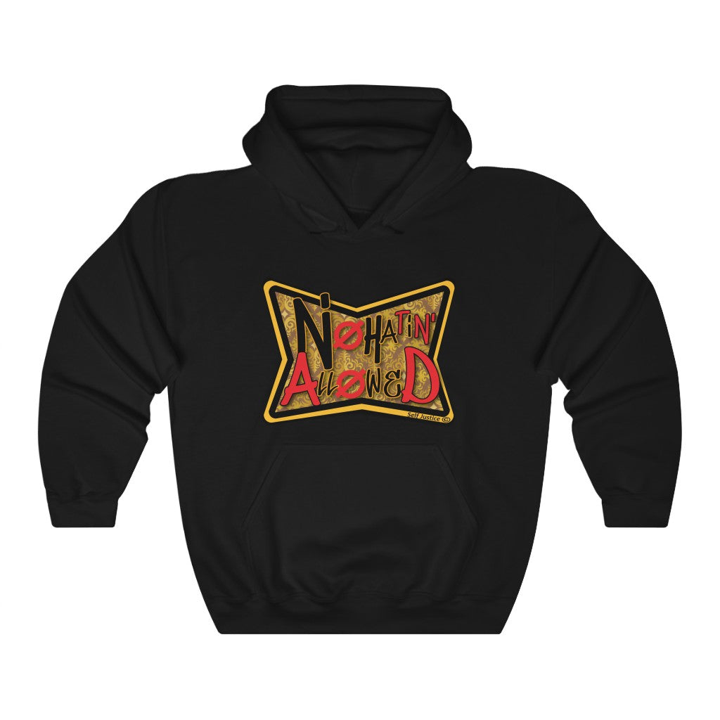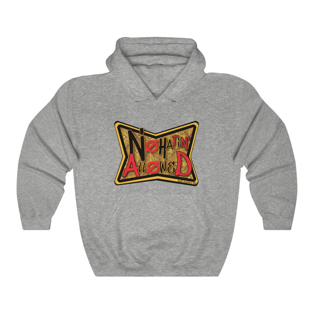 A unisex heavy blend hooded sweatshirt is relaxation itself. The material is a thick blend of cotton and polyester. This makes for a plush, soft feel alongside warmth. It's also a great surface for printing. There are no side seams. A spacious kangaroo pocket hangs in front. The hood's drawstring is the same color as the base sweater.