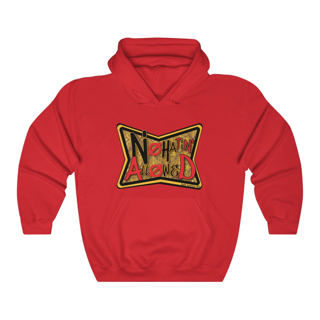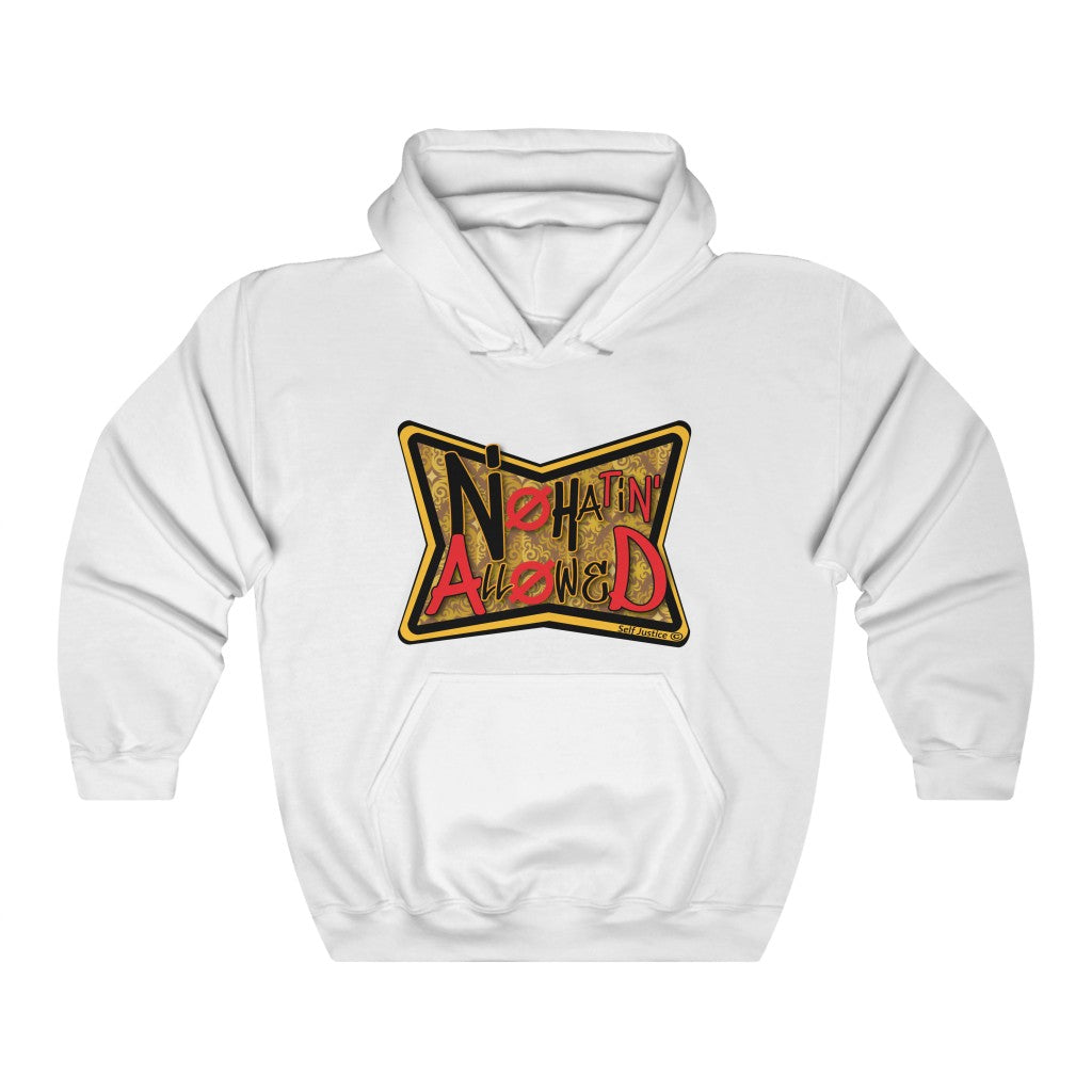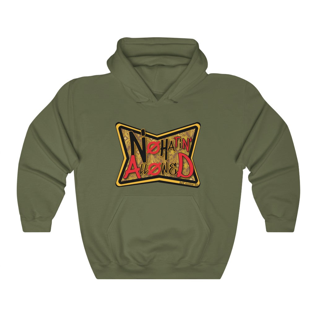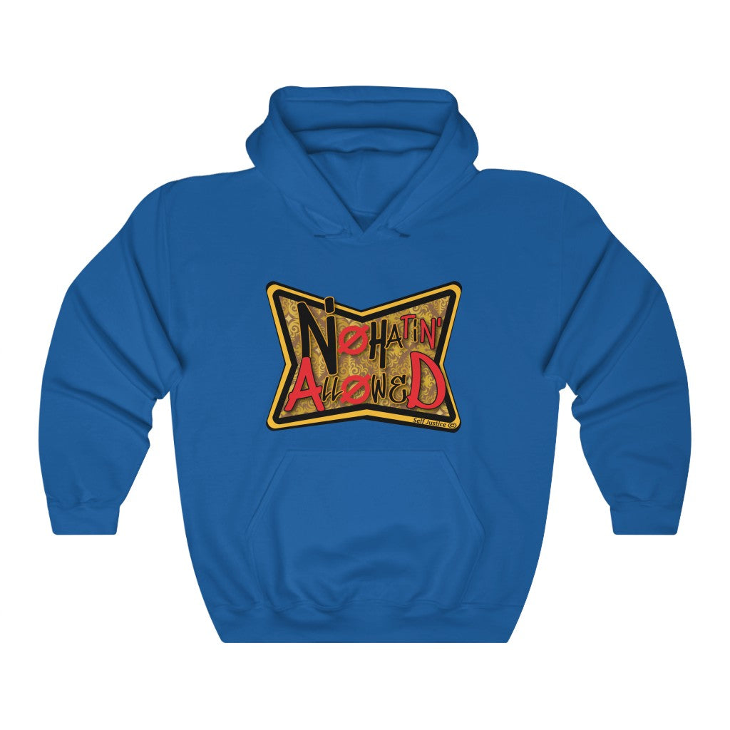 A unisex heavy blend hooded sweatshirt is relaxation itself. The material is a thick blend of cotton and polyester. This makes for a plush, soft feel alongside warmth. It's also a great surface for printing. There are no side seams. A spacious kangaroo pocket hangs in front. The hood's drawstring is the same color as the base sweater.